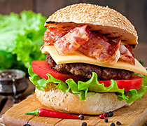 Double Bacon Cheese Burger Served on a Toasted Bun with all the Traditional Trimmings.